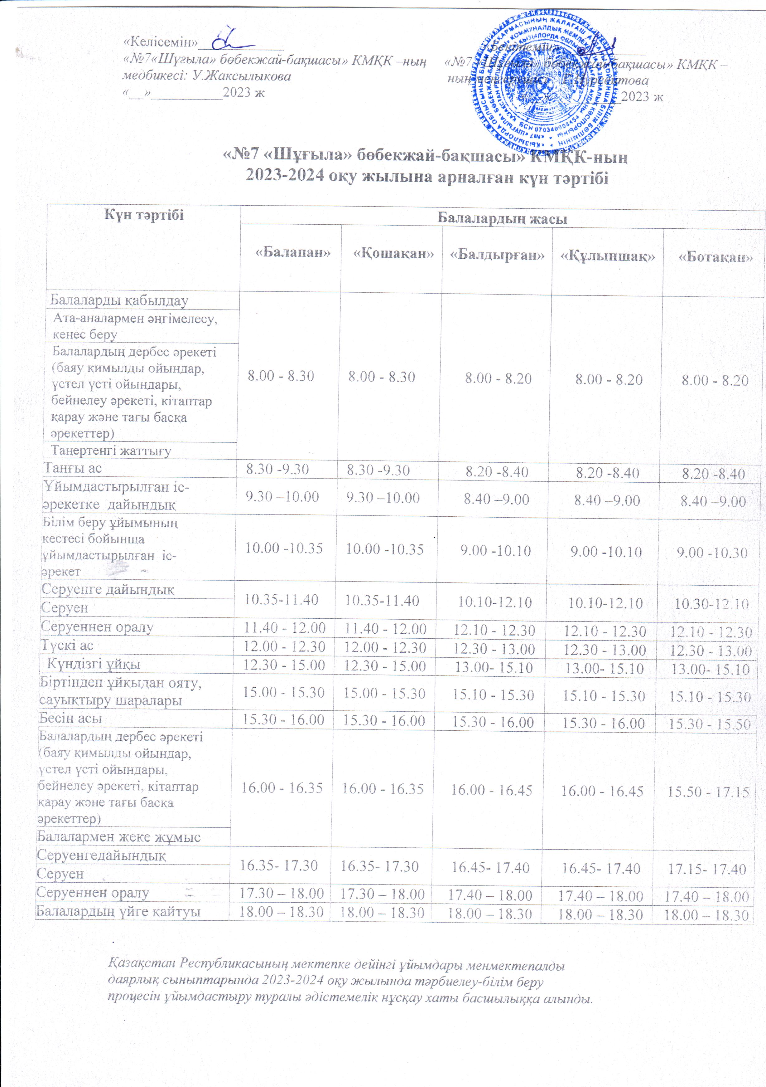 Күн тәртібі 2024 - 2025 оқу жылы