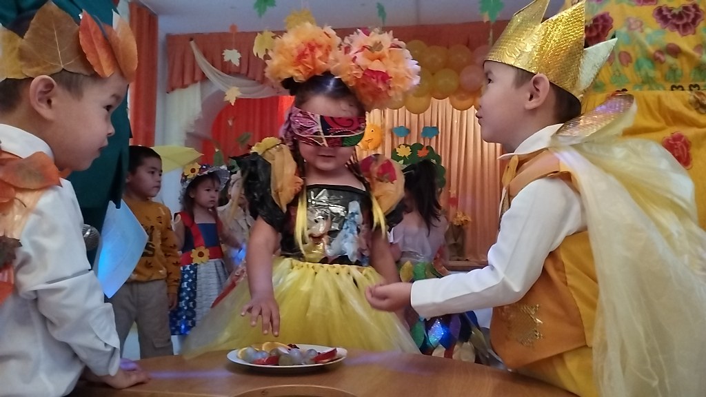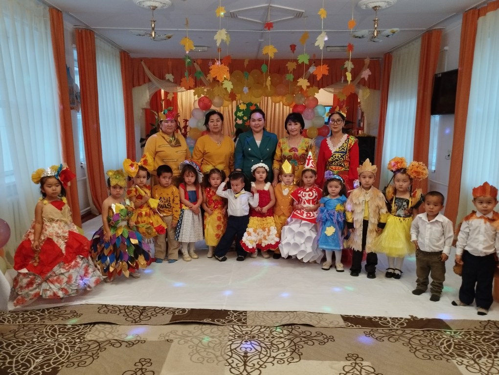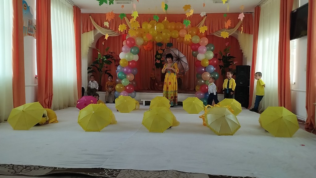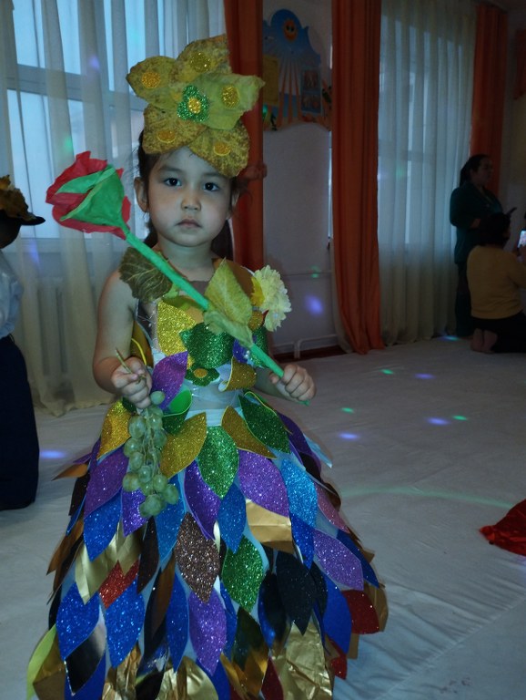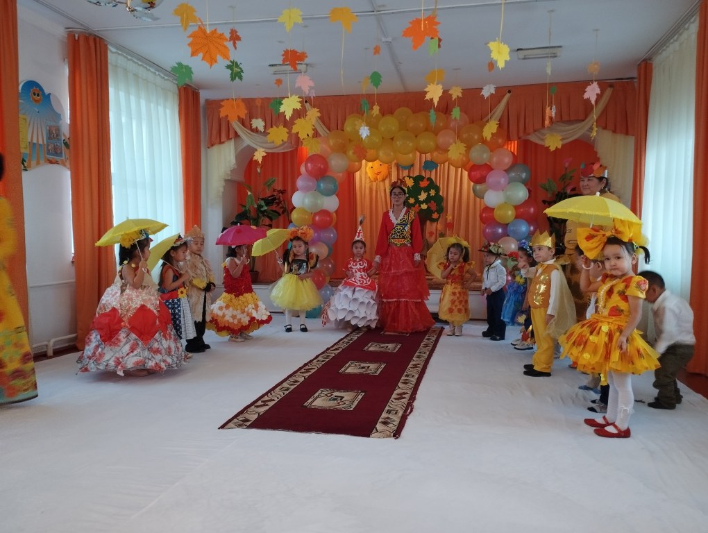 Зал мерекеге сай безендірілген. Мерекелік шара жаңа форматта ата аналардың ұйымдастыруымен болды. Ата- ананың ұйымдастыруымен «Қолшатыр» биі, «Күз тамаша» әндері орындалды. Ата аналары жеміс жидектерден қолдан жасалған көрмелерімен бөлісті. «Дәмінен таны» ойынын тәрбиеленушілер қызыға ойнады. Әр түрлі қалдық материалдардан киім үлгісін жасаудан ерекшеленді.