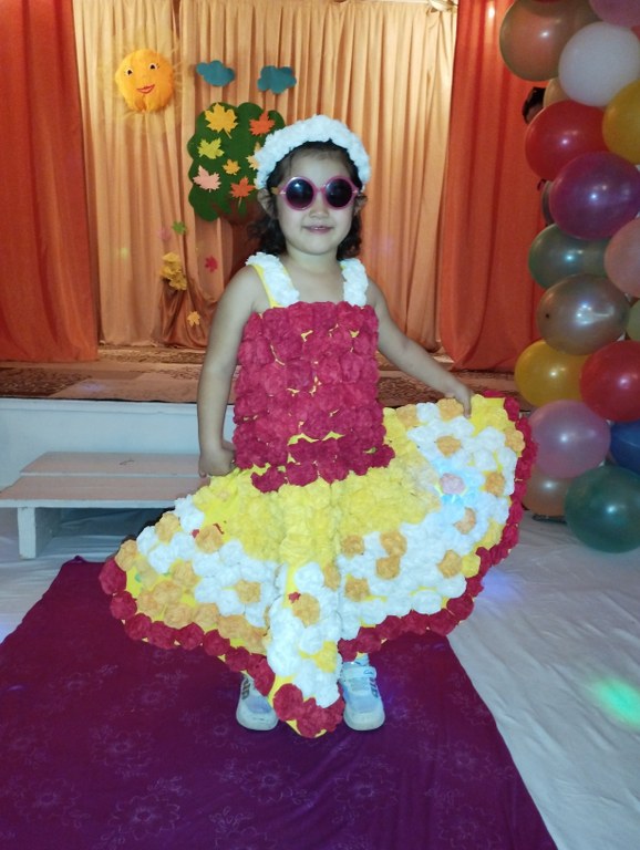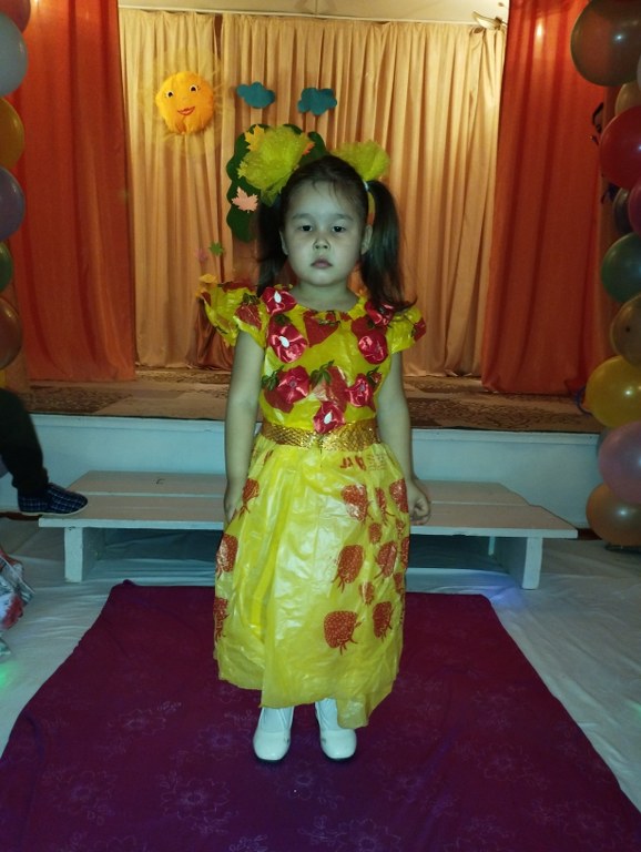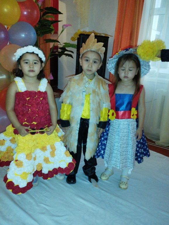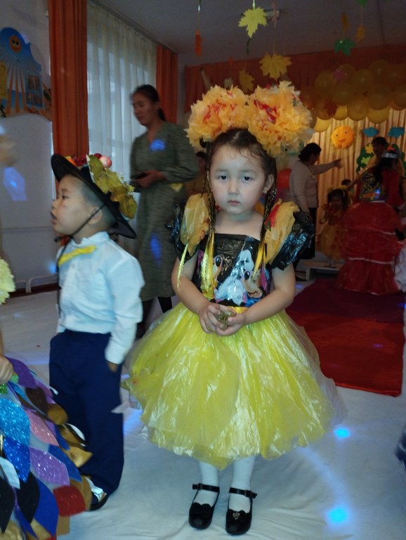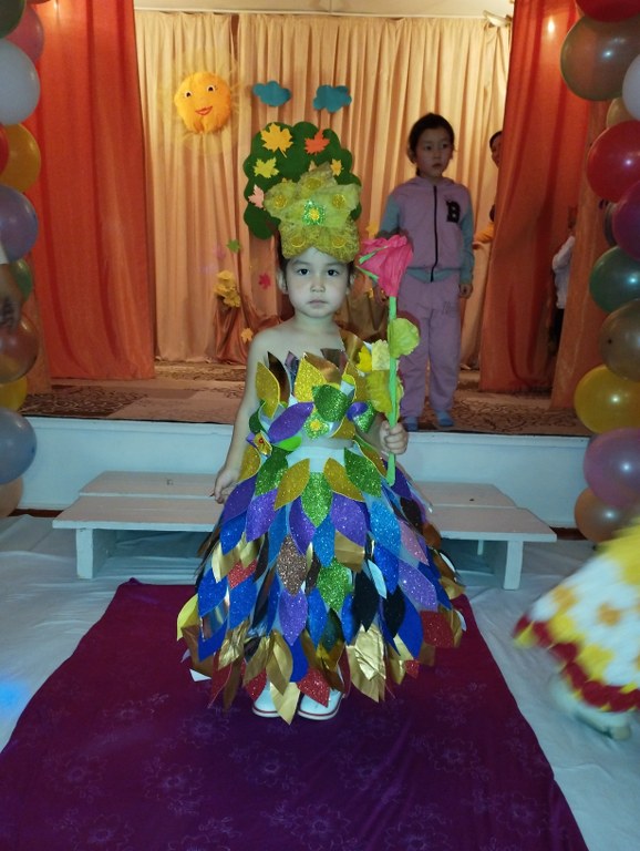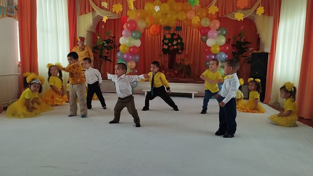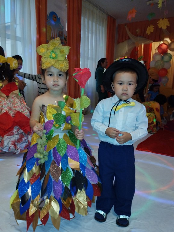 Зал мерекеге сай безендірілген. Мерекелік шара жаңа форматта ата аналардың ұйымдастыруымен болды. Ата- ананың ұйымдастыруымен «Қолшатыр» биі, «Күз тамаша» әндері орындалды. Ата аналары жеміс жидектерден қолдан жасалған көрмелерімен бөлісті. «Дәмінен таны» ойынын тәрбиеленушілер қызыға ойнады. Әр түрлі қалдық материалдардан киім үлгісін жасаудан ерекшеленді.