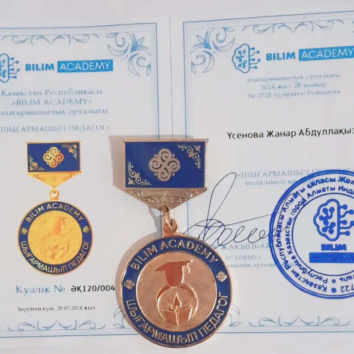 "Ұстаздық еткен жалықпас, Үйретуден балаға", деп Абай атамыз айтқандай, әр педагог өз шәкіртінің бойынан үйреткен білім, білік, дағдысының нәтижесін көргісі келеді. Республикалық онлайн сурет байқауына тәрбиеленушілерін қатыстырған бөбекжай-бақшамыздың тәрбиешісі Үсенова Жанар Абдуллақызы Қазақстан Республикасы "BILIM ACADEMY" шығармашылық орталығының "ШЫҒАРМАШЫЛ ПЕДАГОГ" медалімен марапатталды. Әріптесімізге шығармашылық табыс тілейміз! Шығармашыл шәкірттеріңіз көп болсын!
