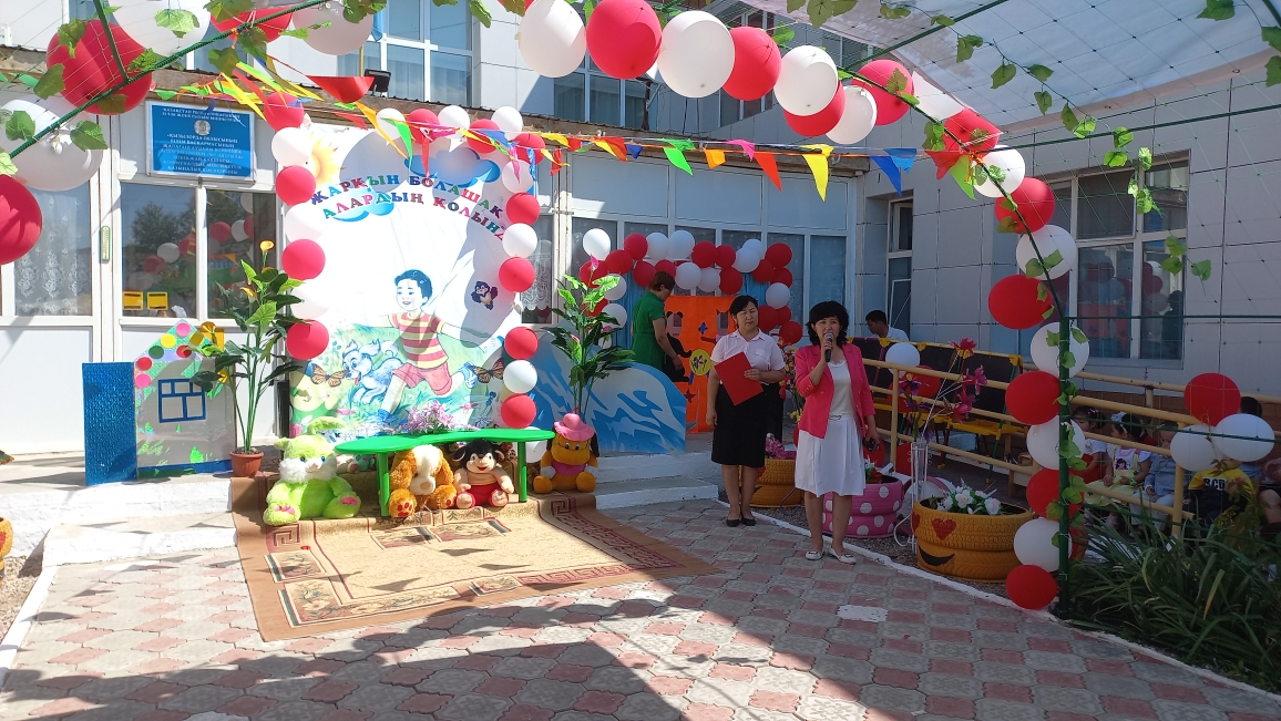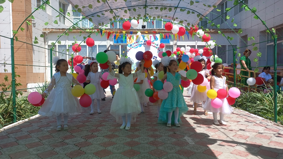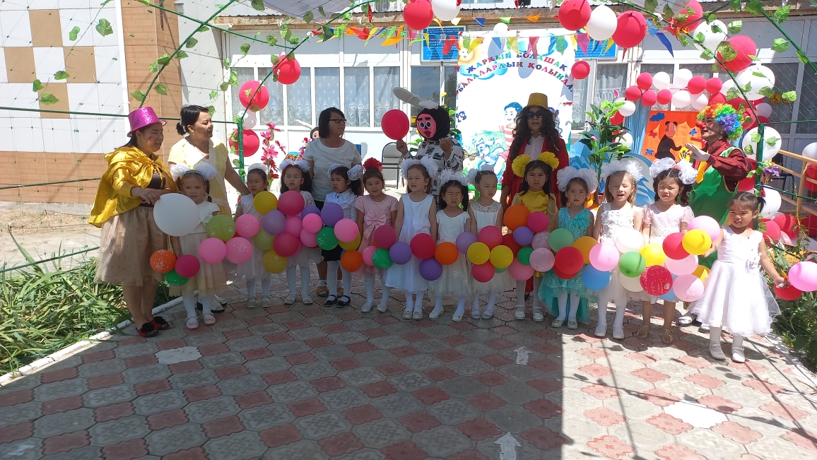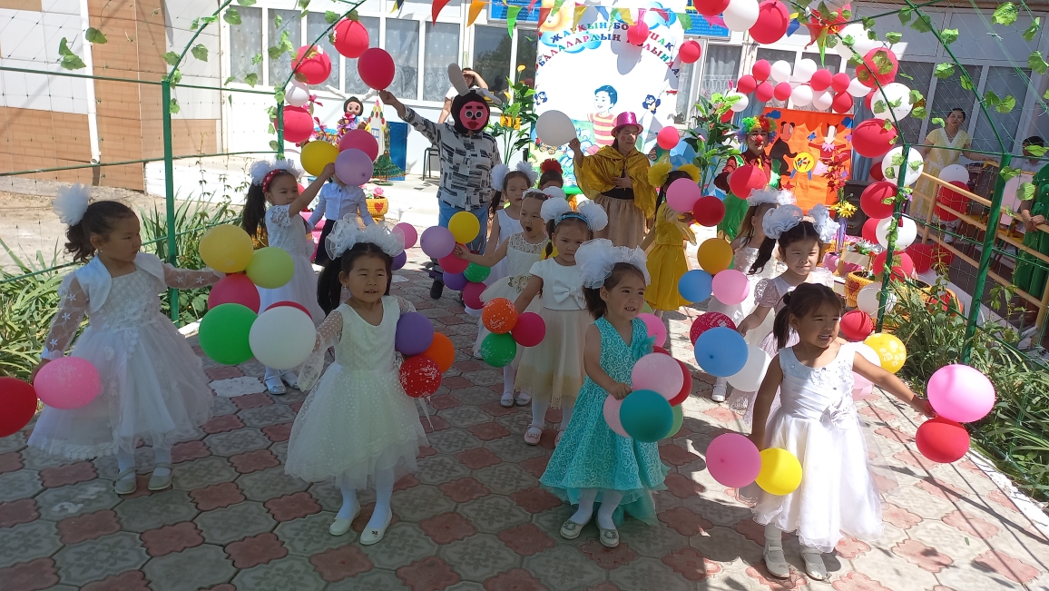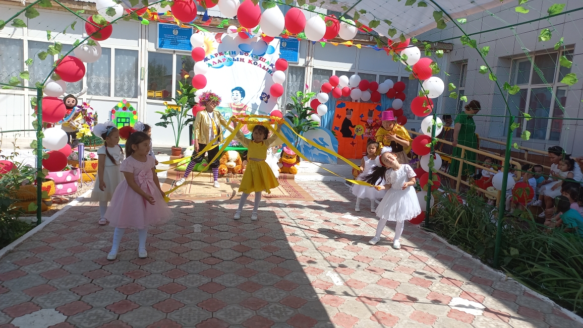 Ашық аспан астында өткен мерекелік шараны бөбекжай-бақшамыздың өнерпаздары Асылхан Томирис пен Ғабит Айбибі "Бал - бала" әнімен ашты. "Мен қазақтың қызымын" әнін Ордабай Гүлсезім, Қуантай Кәусар "Біз өмірдің гүліміз", Марат Нұрислам "Сағындым әже" әнімен жалғастырды. "Құлыншақ" ересек тобының биші қыздары "Сәуле шырақтары", "Балдырған" биін билеп, "Ботақан" ересек тобының тәрбиеленушілері "Үйшік" ертегісін сахналады.