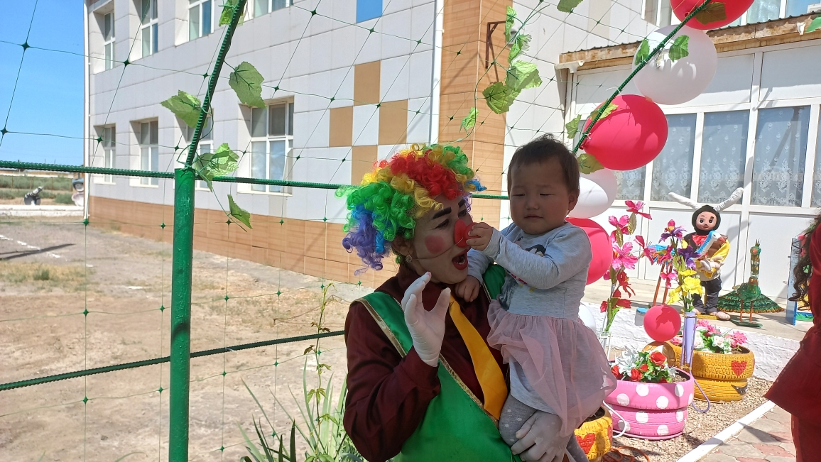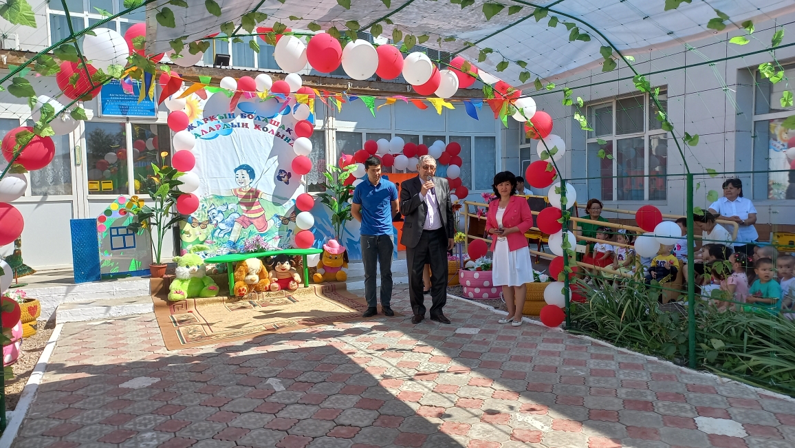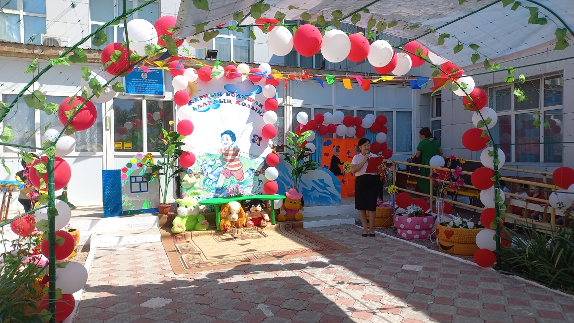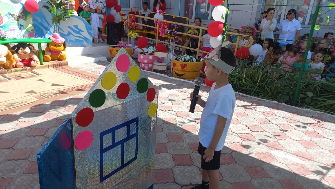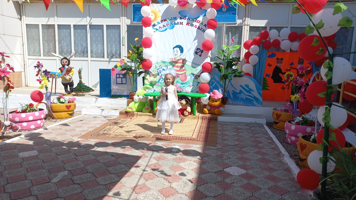 Ашық аспан астында өткен мерекелік шараны бөбекжай-бақшамыздың өнерпаздары Асылхан Томирис пен Ғабит Айбибі "Бал - бала" әнімен ашты. "Мен қазақтың қызымын" әнін Ордабай Гүлсезім, Қуантай Кәусар "Біз өмірдің гүліміз", Марат Нұрислам "Сағындым әже" әнімен жалғастырды. "Құлыншақ" ересек тобының биші қыздары "Сәуле шырақтары", "Балдырған" биін билеп, "Ботақан" ересек тобының тәрбиеленушілері "Үйшік" ертегісін сахналады.